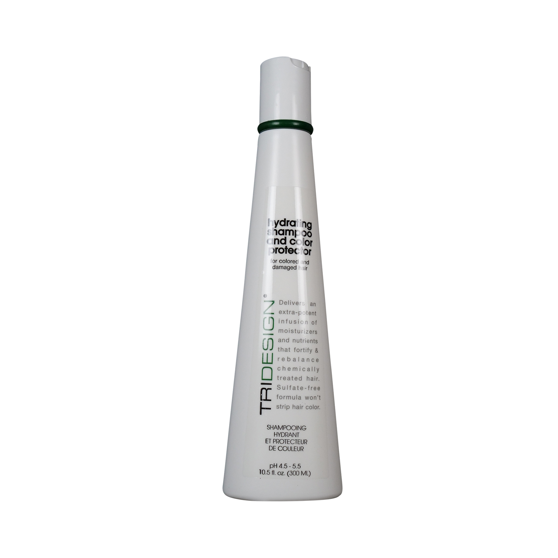 TRIDESIGN Hydrating Shampoo and Color Protector is a unique reparative, daily-use shampoo that is scientifically formulated to repair hair and maintain hair color at the microscopic level, ensuring longer lasting more vibrant color. As it cleanses, this sulfate-free formula is non-abrasive to hair and hair color allowing the Sunflower Extract, combined with powerful antioxidants vitamins C and E, to protect hair color from the sun's UV rays, eliminating a major contributor in hair color fade. Hydrating Shampoo and Color Protector contains patent-pending Seek and Repair technology that delivers an extra potent boost of targeted natural ingredients right where they're needed most to prevent the dryness and breakage that can occur when hair is chemically stressed. Key ingredients bond in place, balancing inconsistencies in the hair restoring it to optimum health.